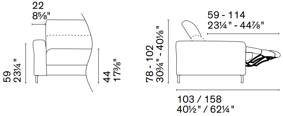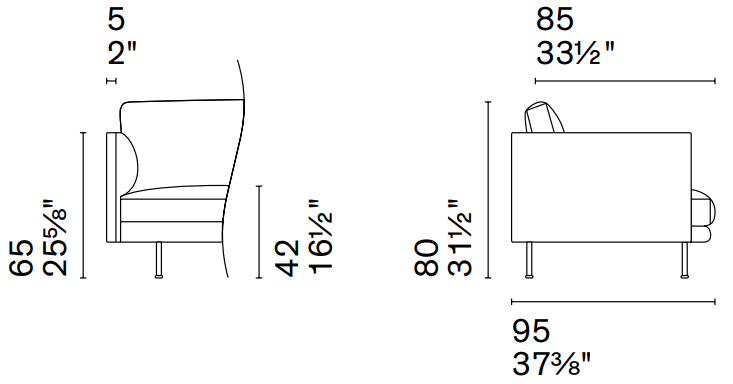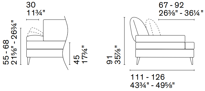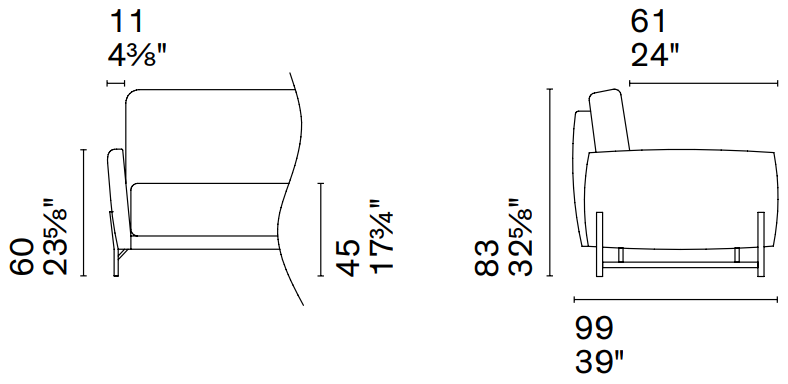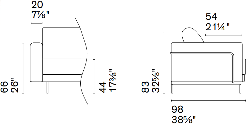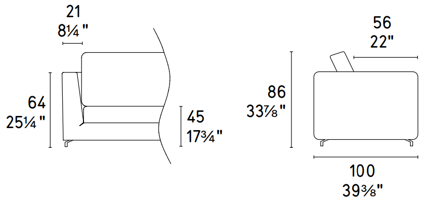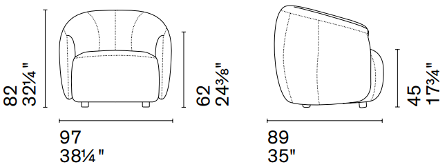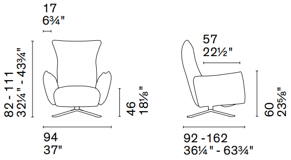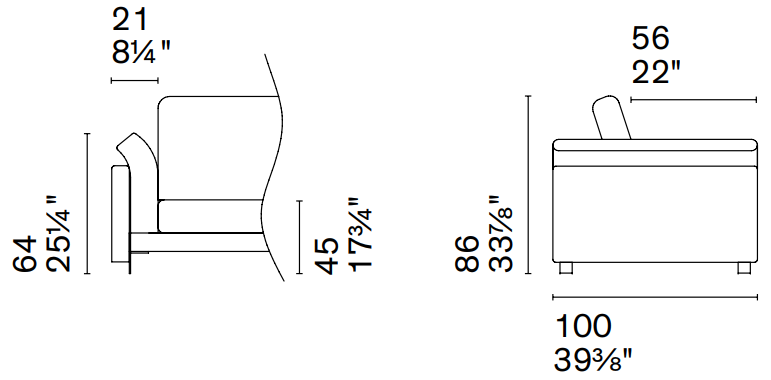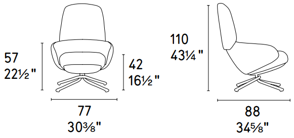 W 21¾ x D 23⅛ x H 35⅛ x HS 25⅝ in.