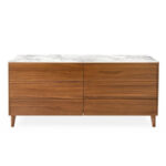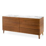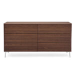 BOSTON is a contemporary dresser that embodies sleek, modern design. It features six handleless drawers that open effortlessly with a push-pull system and are equipped with a soft-close mechanism, ensuring that the drawers maintain a clean and streamlined appearance. Additionally, you have the choice of aluminum or wooden feet to perfectly match the frame with your preferred style.