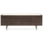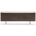 The HORIZON sideboard boasts a timeless design that’s destined to leave a lasting impression in your home. It features four compartments, each equipped with a transparent tempered glass shelf, along with a generously-sized central drawer, providing ample storage space. HORIZON can be tailored to match any decor, offering a range of finish options for the frame, legs, and top in glass or ceramic.