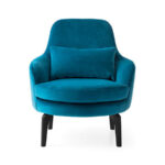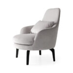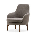 Upholstered armchair with wooden legs