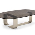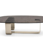 Ribbon is an innovative coffee table that seamlessly blends the solidity of metal with the lightness of glass. Its base features a sculpted metal blade, creating a dynamic visual effect reminiscent of a ribbon gracefully winding and unwinding. This unique design brings a sense of movement and fluidity to any space.